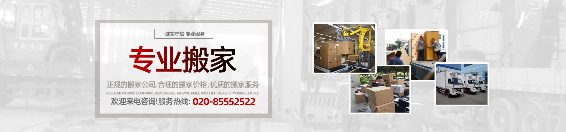 主營業(yè)務(wù):廣州辦公室搬遷、廠房搬遷、廣州天河搬家、海珠搬家、越秀搬家、白云搬家、荔灣搬家、黃埔搬家、番禺搬家、蘿崗搬家及周邊地區(qū)的搬家搬運(yùn)業(yè)務(wù)。